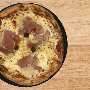 sauce tomate, mozzarella, jambon blanc, jambon cru, pommes de terre et raclettePersonnaliser14,50 €